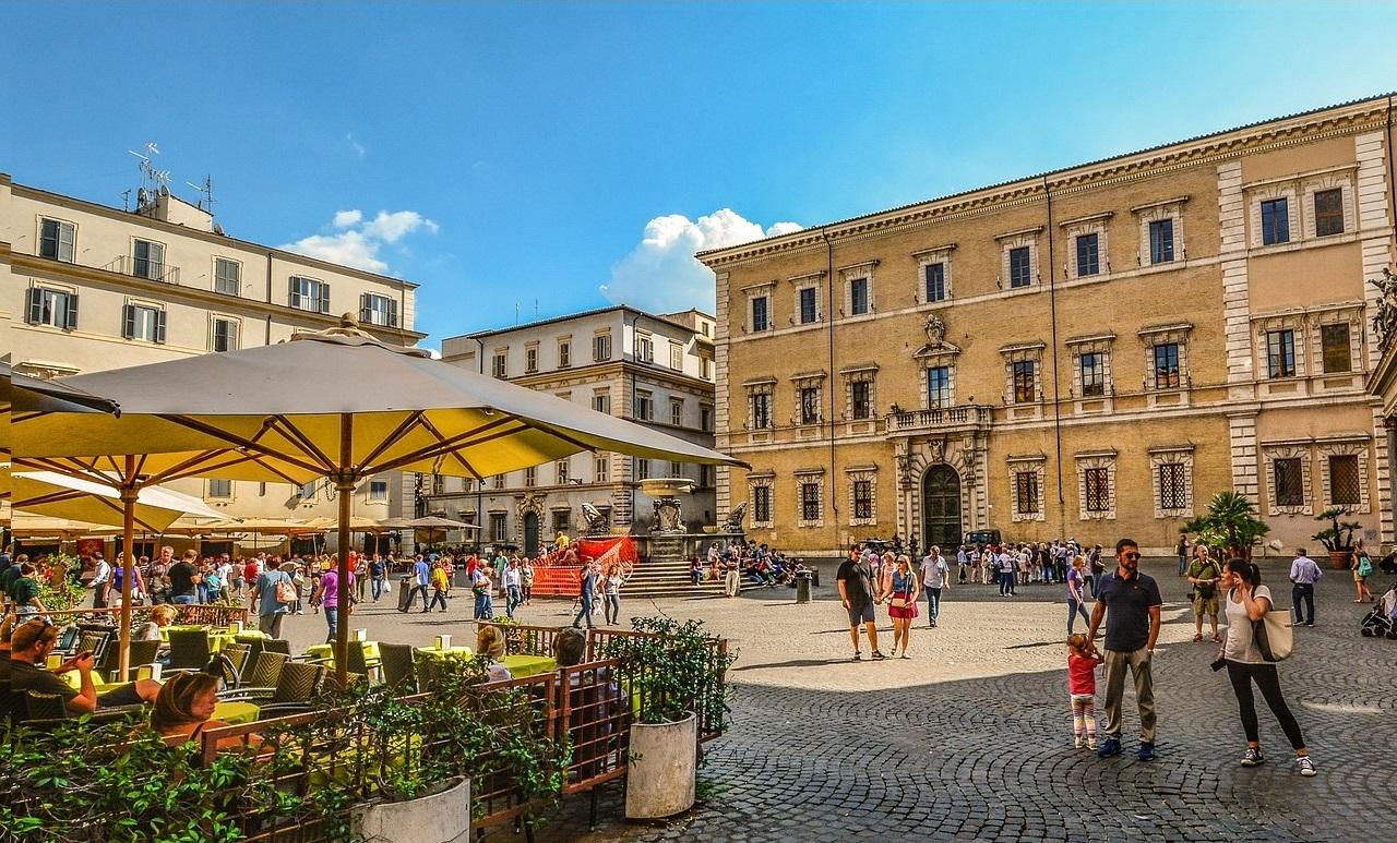 Famosa piazza con fontane barocche e vivaci caffè all'aperto.